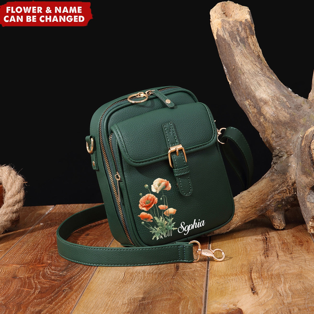 Personalized Birthday Flower Anti-Theft Purse Crossbody Leather Bag