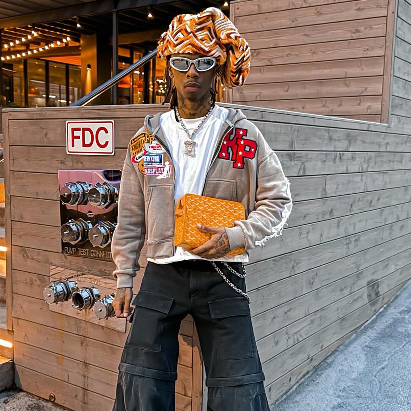 Vintage washed patch zipper hoodie